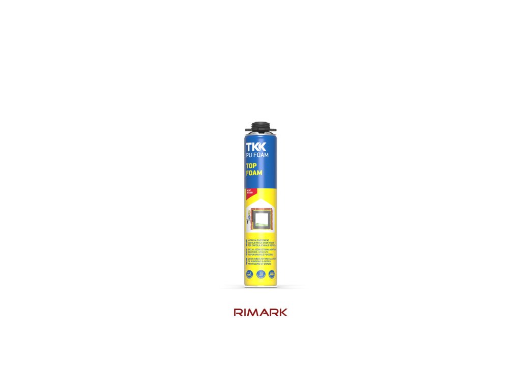 TKK PU-FOAM TOP FOAM - štandardná jednozložková montážna PUR pena v PROFI kvalite vytvrdzujúca vzdušnou vlhkosťou. Je použiteľná v širokej škále aplikácií na tesnenie, montáž, výplne, izolovanie a inštaláciu . Po aplikácii má pena expanduje o 30 až 50%. Presná aplikácia peny umožňuje rýchlejšie vykonanie prác a nízku spotrebu. Pena má zvýšenú lepivosť a výborne priľne ku všetkým stavebným materiálom, okrem PTFE, silikónu a polyetylénu. Je odolná proti vode a starnutiu.